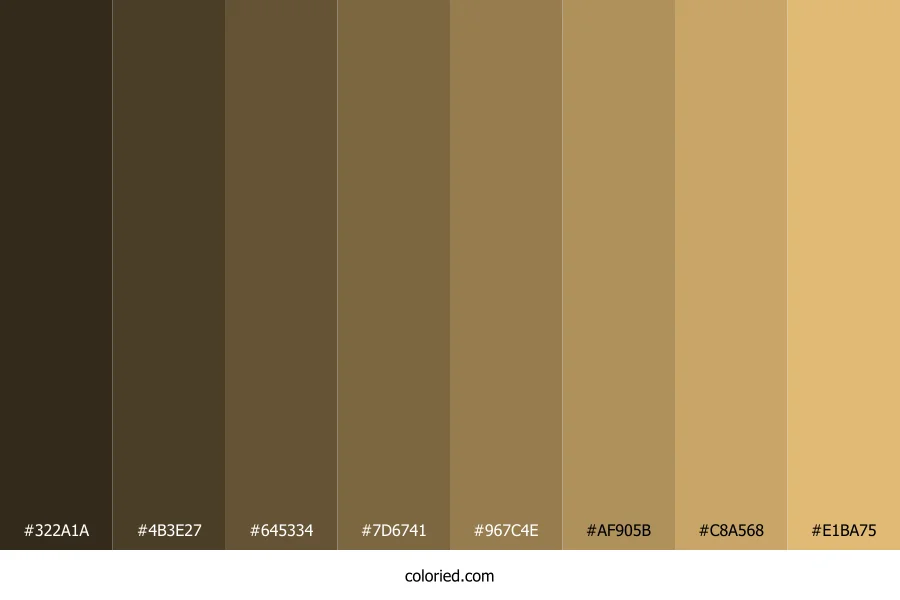 ![]() | #322A1A | 50, 42, 26 | 40, 32%, 15% | 0%, 16%, 48%, 80% | oklch(0.289 0.029 84) |