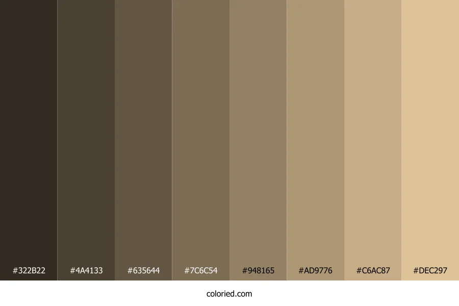 ![]() | #322B22 | 50, 43, 34 | 34, 19%, 16% | 0%, 14%, 32%, 80% | oklch(0.294 0.019 74) |