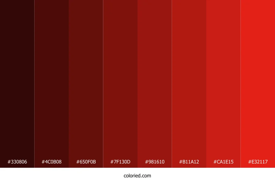 | #7F130D | 127, 19, 13 | 3, 81%, 27% | 0%, 85%, 90%, 50% | oklch(0.386 0.143 29) | |