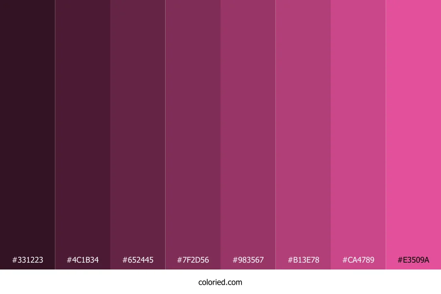 ![]() | #331223 | 51, 18, 35 | 329, 48%, 14% | 0%, 65%, 31%, 80% | oklch(0.240 0.058 350) |