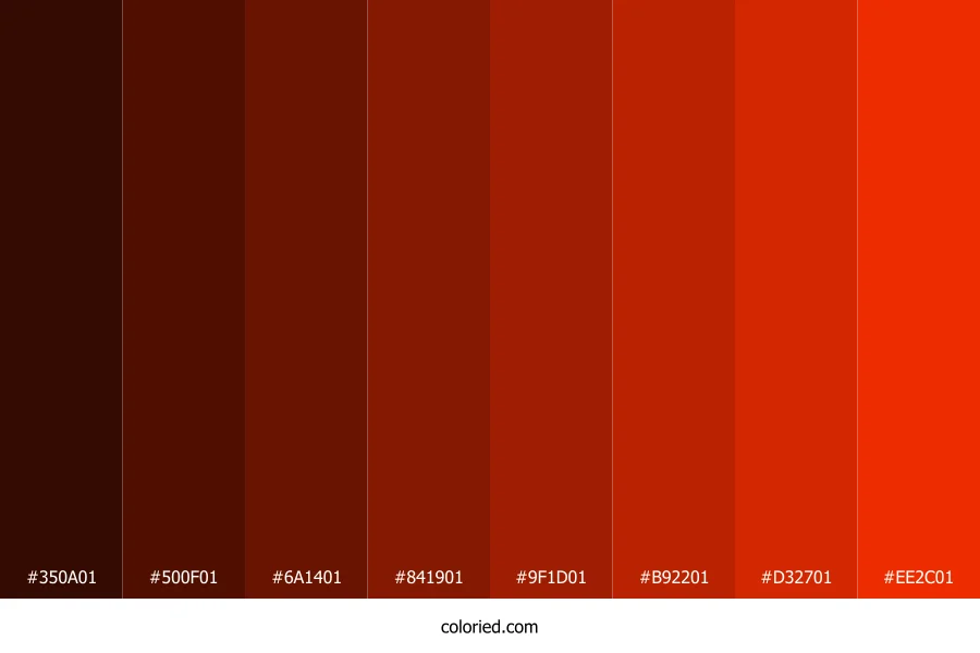 | #500F01 | 80, 15, 1 | 11, 98%, 16% | 0%, 81%, 99%, 69% | oklch(0.285 0.099 35) | |