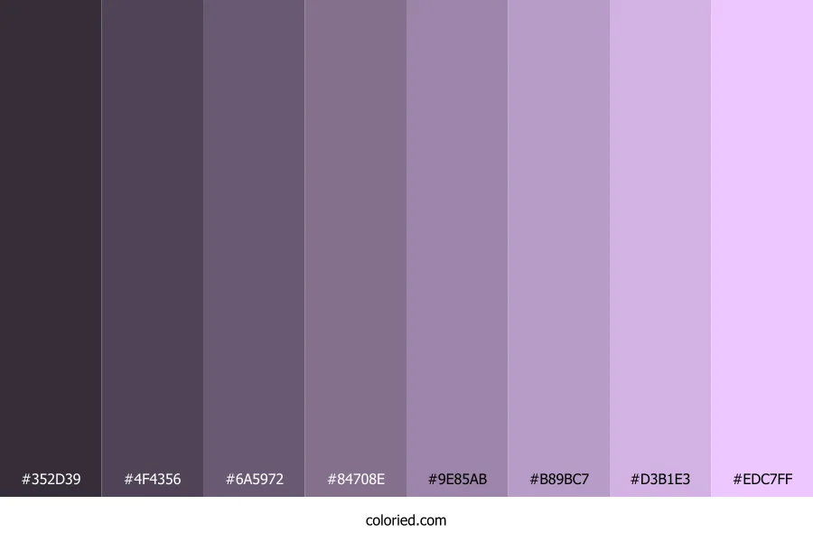 ![]() | #352D39 | 53, 45, 57 | 280, 12%, 20% | 7%, 21%, 0%, 78% | oklch(0.311 0.024 314) |