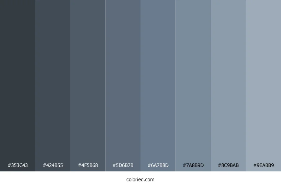 ![]() | #353C43 | 53, 60, 67 | 210, 12%, 24% | 21%, 10%, 0%, 74% | oklch(0.352 0.015 248) |