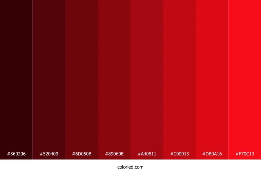 | #F70C19 | 247, 12, 25 | 357, 94%, 51% | 0%, 95%, 90%, 3% | oklch(0.616 0.248 28) |
