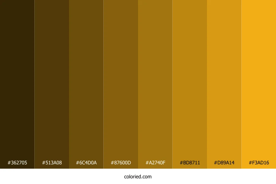 | #BD8711 | 189, 135, 17 | 41, 83%, 40% | 0%, 29%, 91%, 26% | oklch(0.660 0.133 79) | |