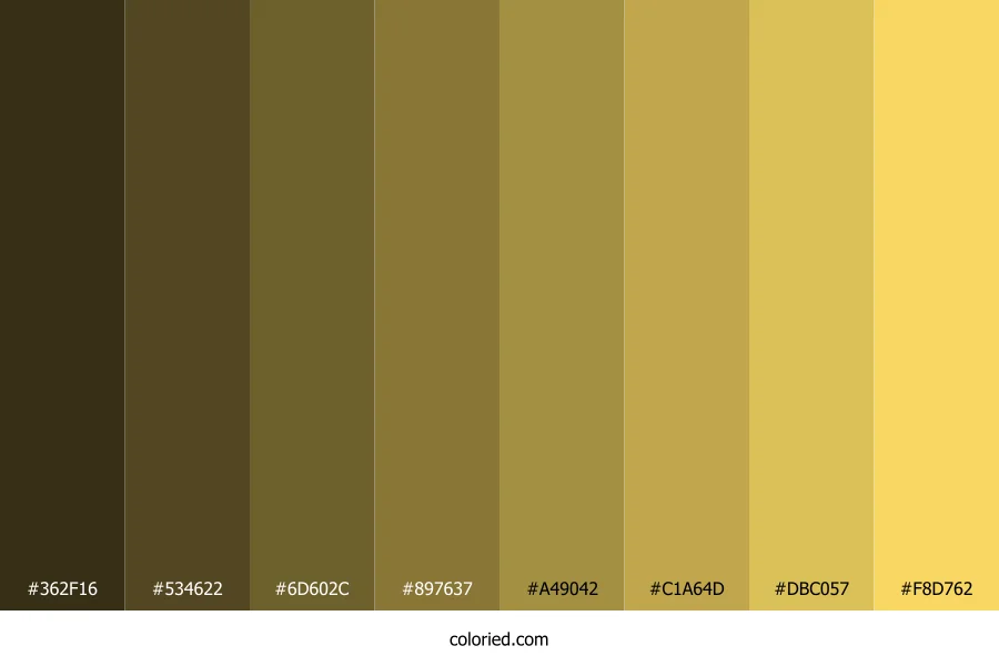 ![]() | #362F16 | 54, 47, 22 | 47, 42%, 15% | 0%, 13%, 59%, 79% | oklch(0.306 0.041 94) |