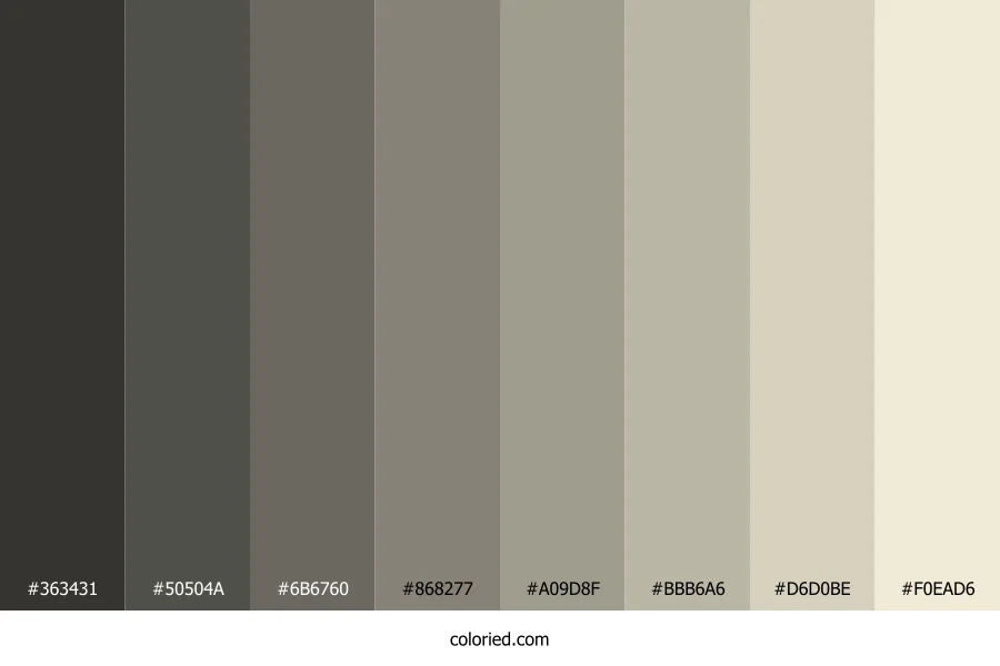 | #BBB6A6 | 187, 182, 166 | 46, 13%, 69% | 0%, 3%, 11%, 27% | oklch(0.776 0.023 93) | |