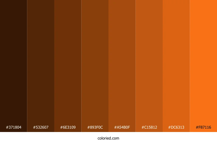 | #F87116 | 248, 113, 22 | 24, 94%, 53% | 0%, 54%, 91%, 3% | oklch(0.701 0.187 47) |