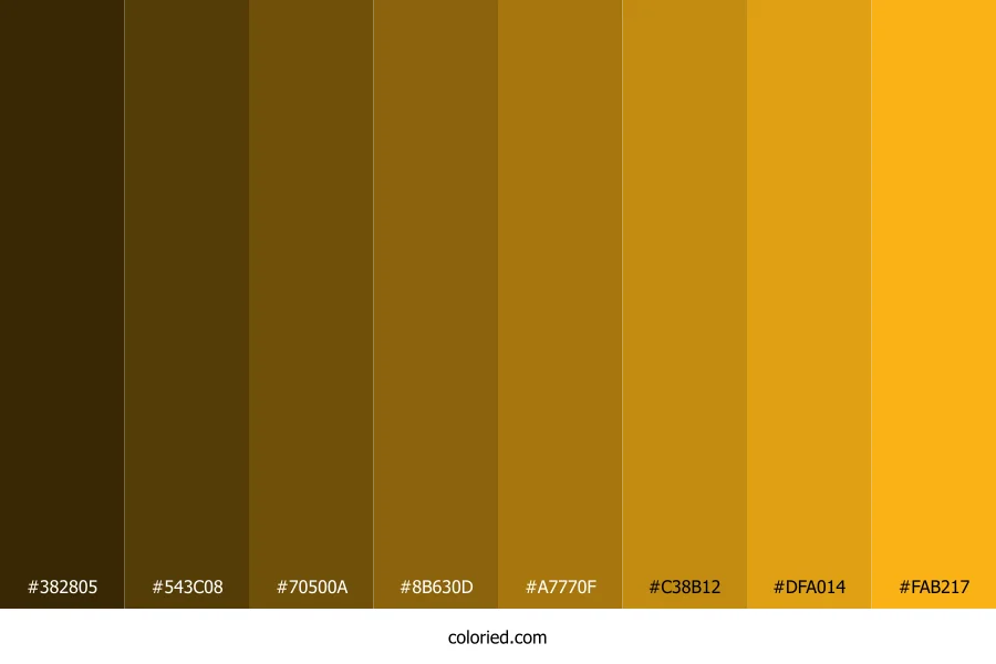 | #FAB217 | 250, 178, 23 | 41, 96%, 54% | 0%, 29%, 91%, 2% | oklch(0.811 0.165 79) |