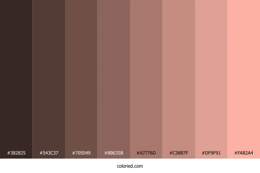 ![]() | #382825 | 56, 40, 37 | 9, 20%, 18% | 0%, 29%, 34%, 78% | oklch(0.295 0.025 31) |