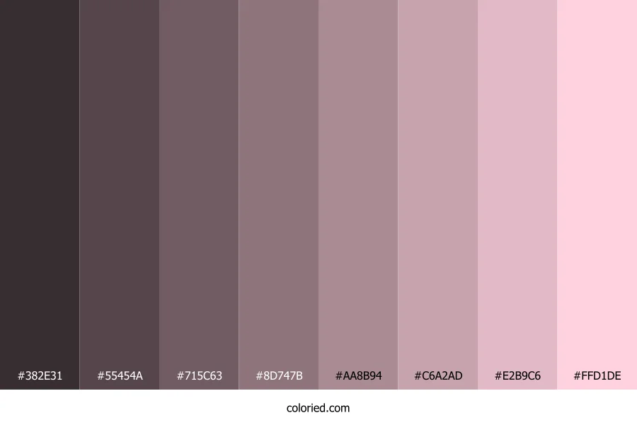 ![]() | #382E31 | 56, 46, 49 | 342, 10%, 20% | 0%, 18%, 13%, 78% | oklch(0.313 0.015 358) |