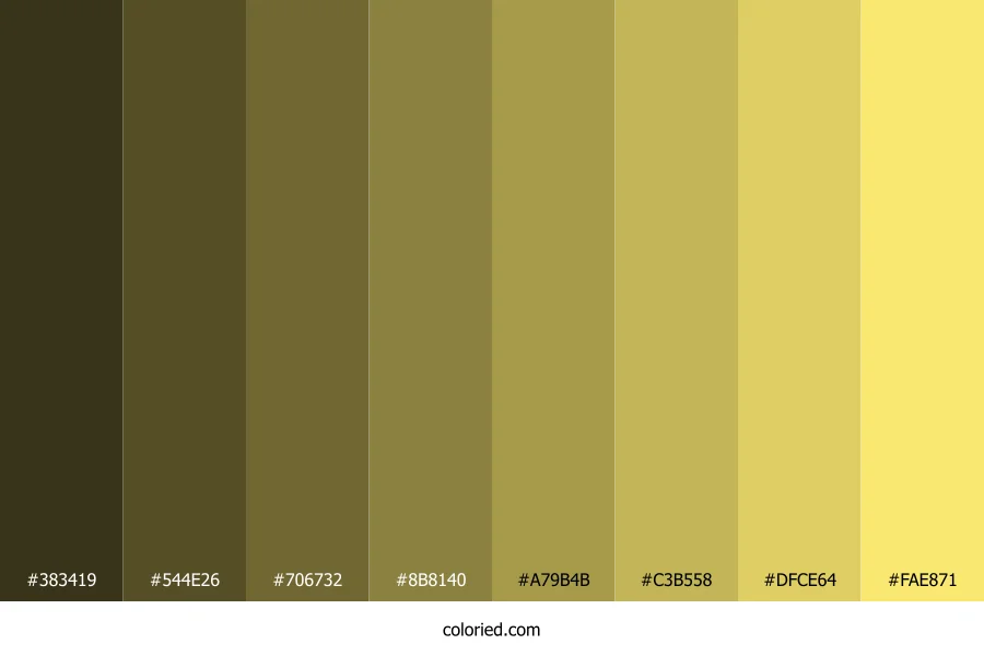 ![]() | #383419 | 56, 52, 25 | 52, 38%, 16% | 0%, 7%, 55%, 78% | oklch(0.322 0.043 101) |