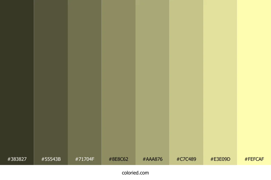 ![]() | #383827 | 56, 56, 39 | 60, 18%, 19% | 0%, 0%, 30%, 78% | oklch(0.335 0.028 108) |