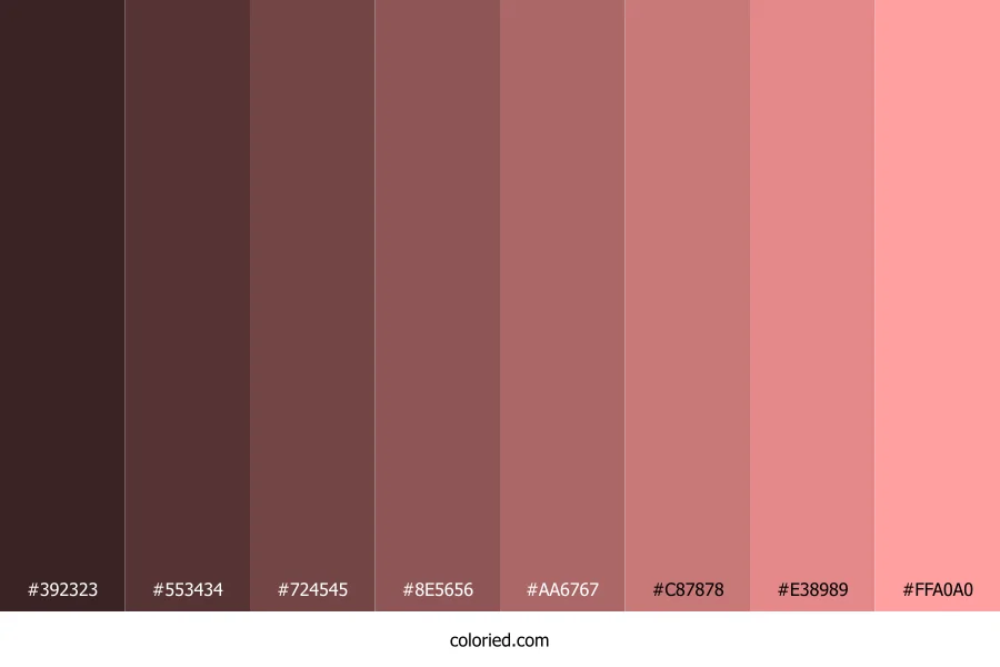 | #8E5656 | 142, 86, 86 | 0, 25%, 45% | 0%, 39%, 39%, 44% | oklch(0.516 0.075 20) | |