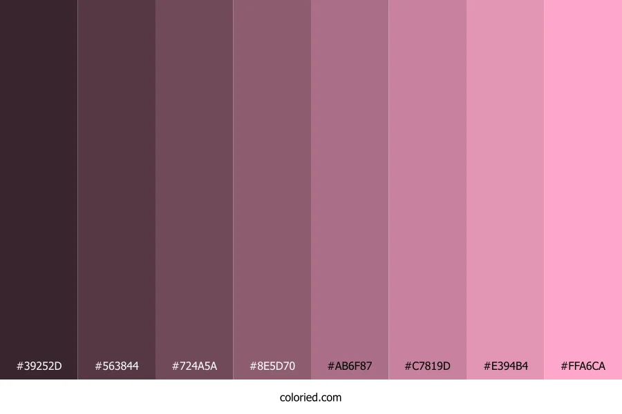 ![]() | #39252D | 57, 37, 45 | 336, 21%, 18% | 0%, 35%, 21%, 78% | oklch(0.292 0.033 354) |