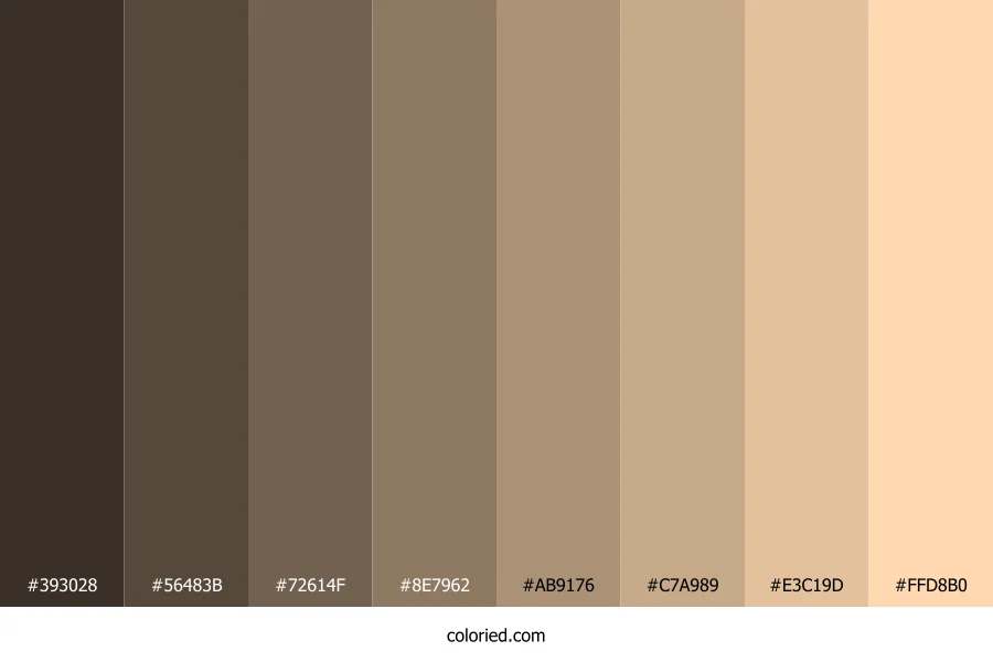 | #8E7962 | 142, 121, 98 | 31, 18%, 47% | 0%, 15%, 31%, 44% | oklch(0.589 0.042 69) | |