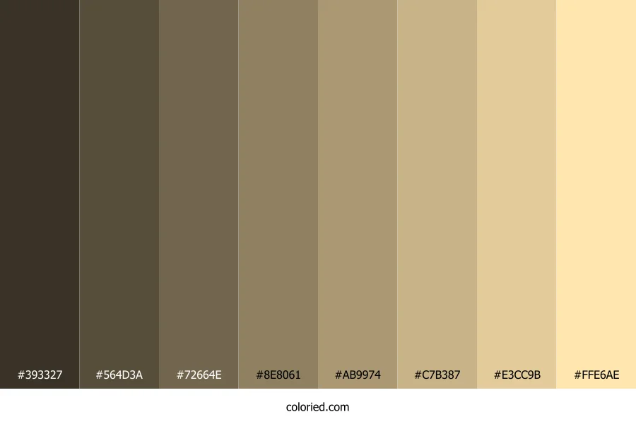 | #8E8061 | 142, 128, 97 | 41, 19%, 47% | 0%, 10%, 32%, 44% | oklch(0.604 0.047 86) | |