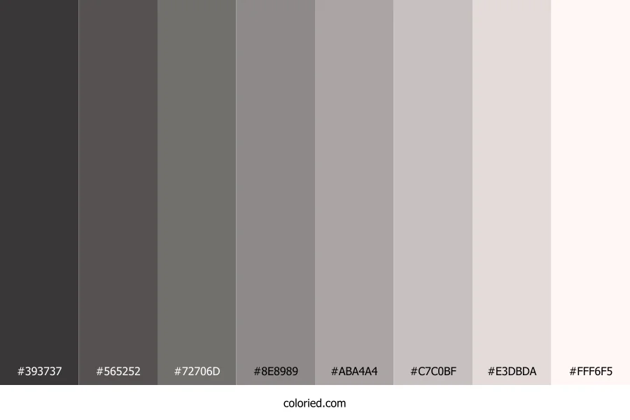 | #8E8989 | 142, 137, 137 | 0, 2%, 55% | 0%, 4%, 4%, 44% | oklch(0.634 0.006 17) | |
