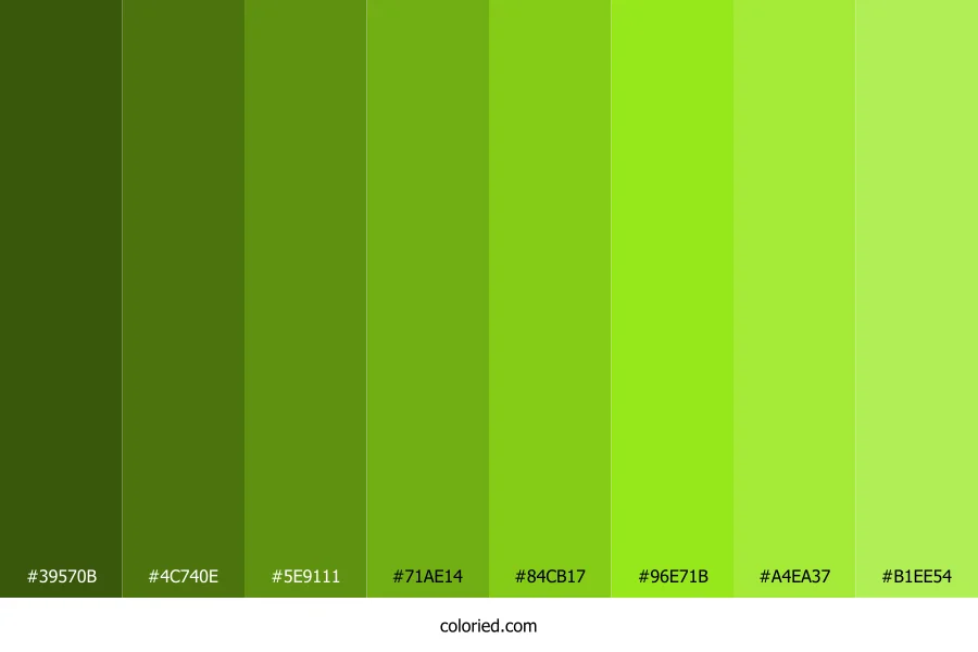 | #B1EE54 | 177, 238, 84 | 84, 82%, 63% | 26%, 0%, 65%, 7% | oklch(0.878 0.192 128) |
