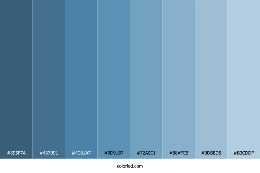 ![]() | #395F7A | 57, 95, 122 | 205, 36%, 35% | 53%, 22%, 0%, 52% | oklch(0.469 0.062 241) |