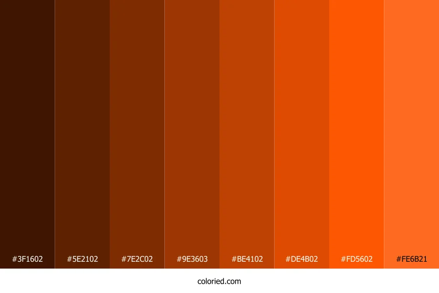 | #5E2102 | 94, 33, 2 | 20, 96%, 19% | 0%, 65%, 98%, 63% | oklch(0.336 0.097 43) | |