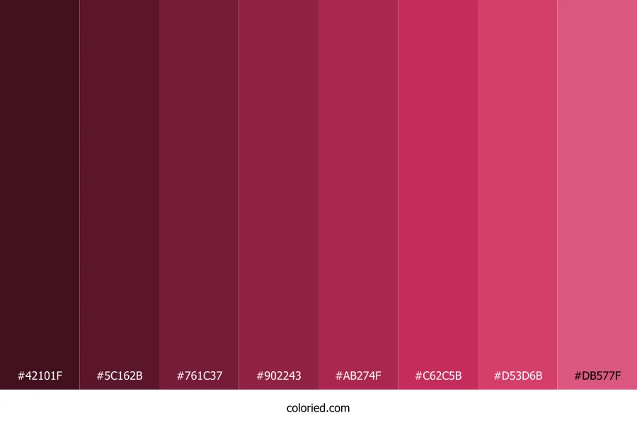![]() | #42101F | 66, 16, 31 | 342, 61%, 16% | 0%, 76%, 53%, 74% | oklch(0.264 0.078 6) |