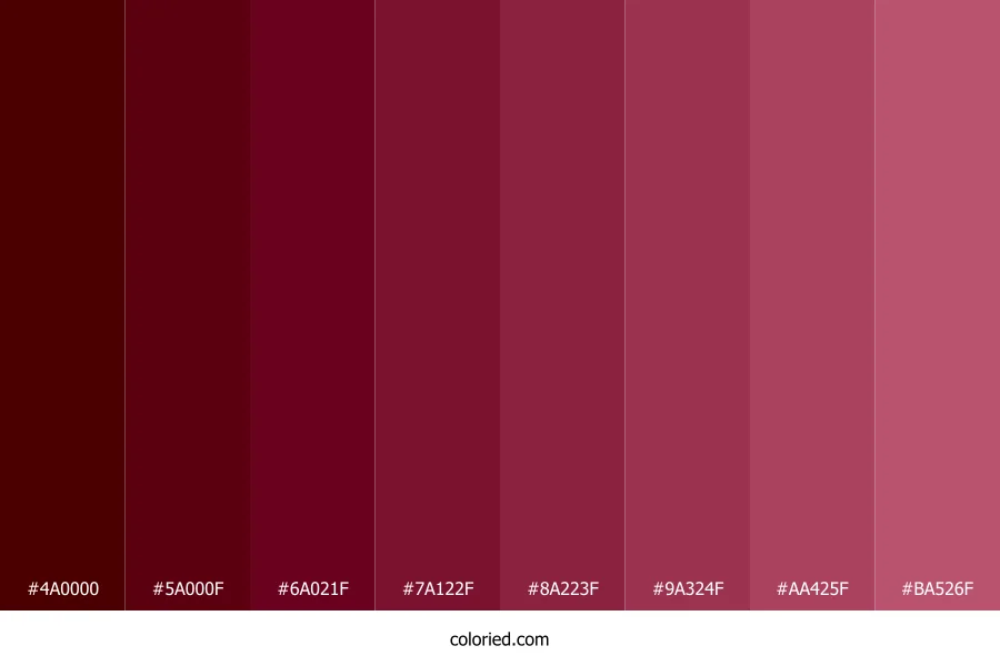 ![]() | #4A0000 | 74, 0, 0 | 0, 100%, 15% | 0%, 100%, 100%, 71% | oklch(0.257 0.105 29) |