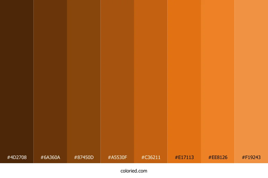 | #F19243 | 241, 146, 67 | 27, 86%, 60% | 0%, 39%, 72%, 5% | oklch(0.746 0.147 57) |