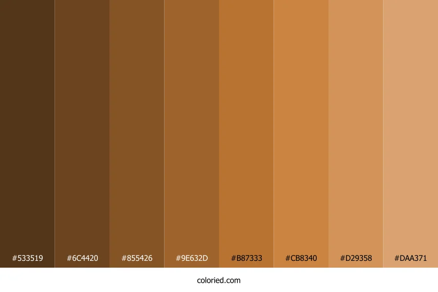 | #9E632D | 158, 99, 45 | 29, 56%, 40% | 0%, 37%, 72%, 38% | oklch(0.554 0.103 60) | |