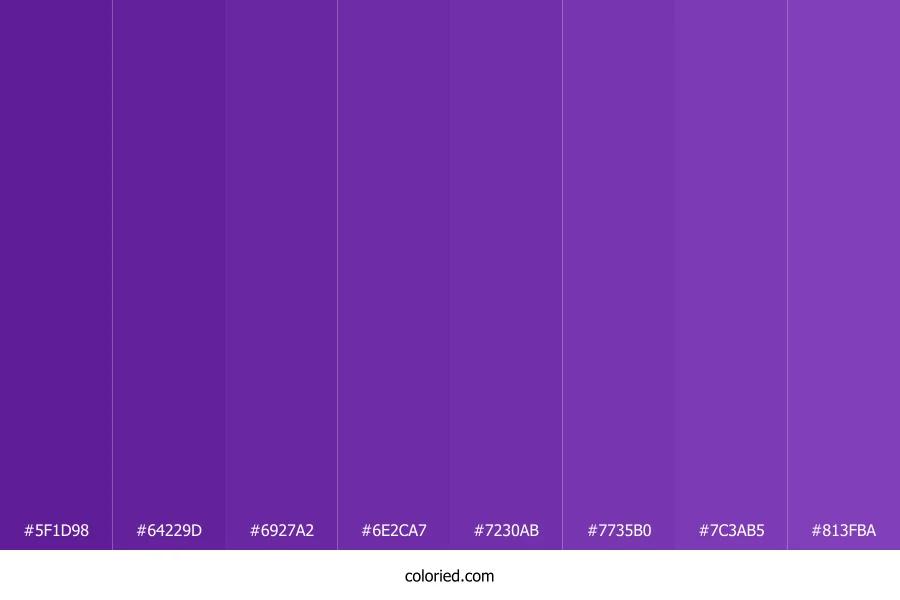 ![]() | #5F1D98 | 95, 29, 152 | 272, 68%, 35% | 38%, 81%, 0%, 40% | oklch(0.406 0.184 303) |