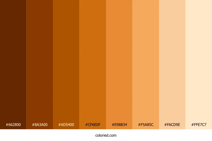 | #8A3A00 | 138, 58, 0 | 25, 100%, 27% | 0%, 58%, 100%, 46% | oklch(0.450 0.124 47) | |