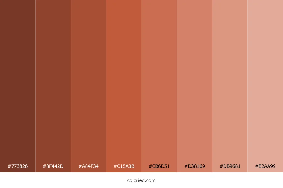 | #8F442D | 143, 68, 45 | 14, 52%, 37% | 0%, 52%, 69%, 44% | oklch(0.478 0.108 38) | |