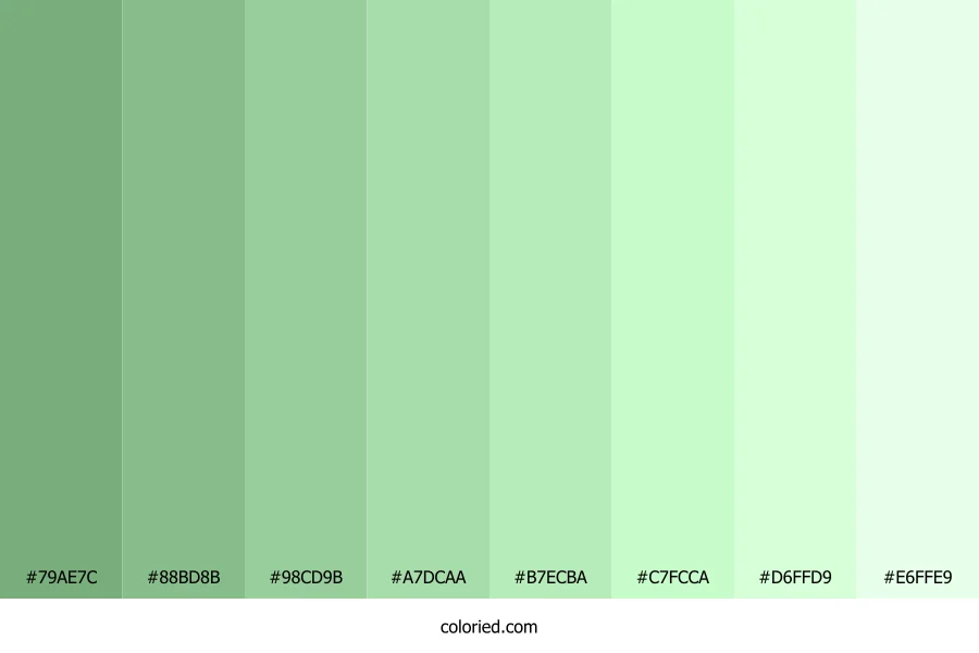 ![]() | #79AE7C | 121, 174, 124 | 123, 25%, 58% | 30%, 0%, 29%, 32% | oklch(0.700 0.091 146) |