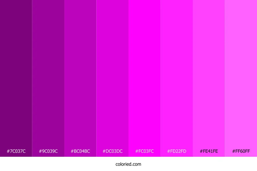 | #DC03DC | 220, 3, 220 | 300, 97%, 44% | 0%, 99%, 0%, 14% | oklch(0.628 0.288 328) | |