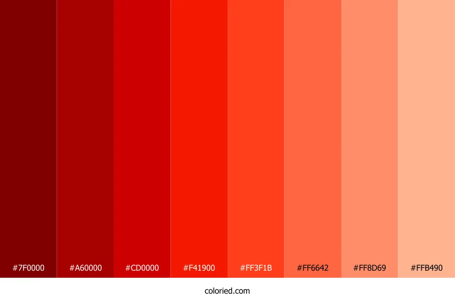 | #CD0000 | 205, 0, 0 | 0, 100%, 40% | 0%, 100%, 100%, 20% | oklch(0.533 0.219 29) | |