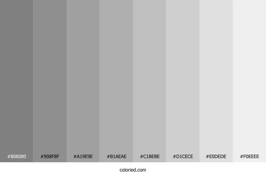 ![]() | #808080 | 128, 128, 128 | 0, 0%, 50% | 0%, 0%, 0%, 50% | oklch(0.600 0.000 263) |