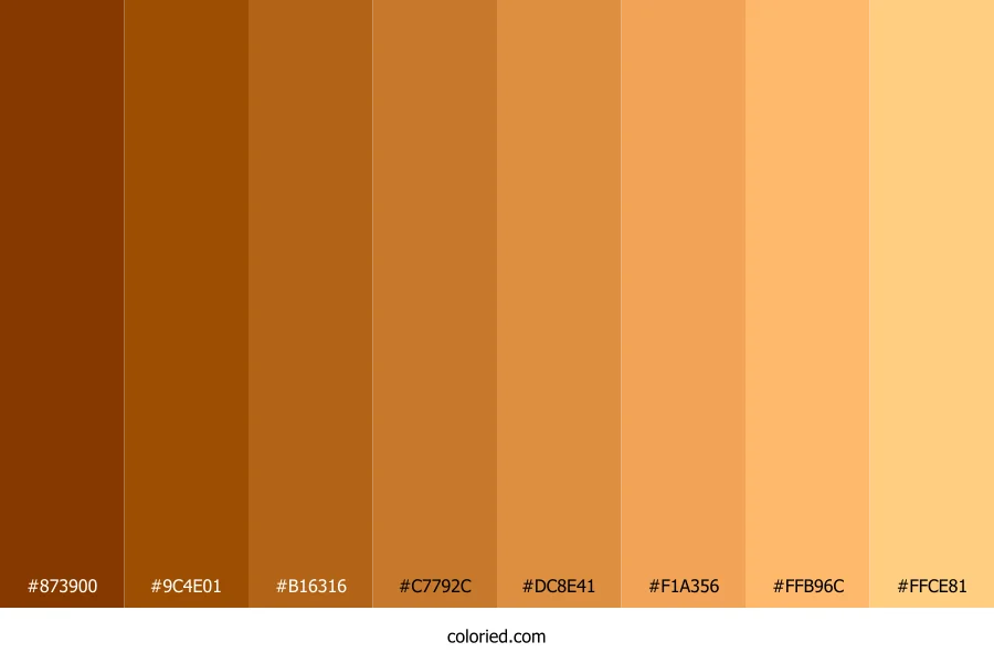 | #DC8E41 | 220, 142, 65 | 30, 69%, 56% | 0%, 35%, 70%, 14% | oklch(0.713 0.132 62) | |