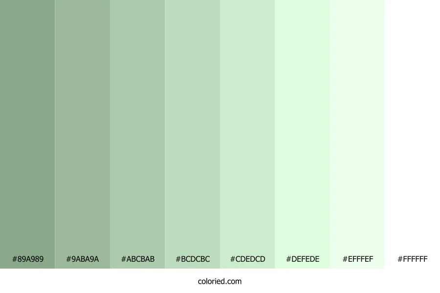 | #BCDCBC | 188, 220, 188 | 120, 31%, 80% | 15%, 0%, 15%, 14% | oklch(0.862 0.055 145) | |