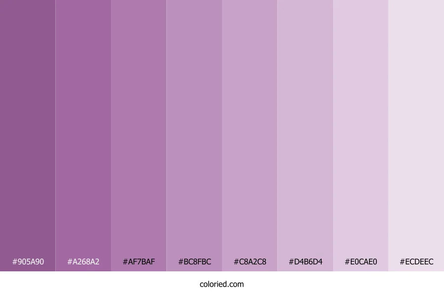 ![]() | #905A90 | 144, 90, 144 | 300, 23%, 46% | 0%, 37%, 0%, 44% | oklch(0.547 0.103 327) |