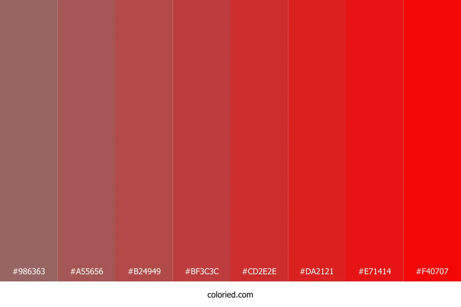 ![]() | #986363 | 152, 99, 99 | 0, 21%, 49% | 0%, 35%, 35%, 40% | oklch(0.557 0.069 19) |