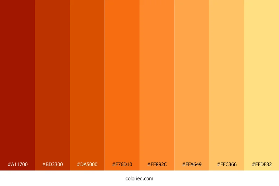 | #DA5000 | 218, 80, 0 | 22, 100%, 43% | 0%, 63%, 100%, 15% | oklch(0.611 0.186 41) | |