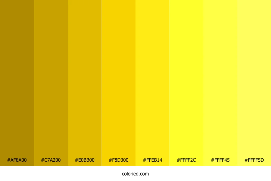 | #F8D300 | 248, 211, 0 | 51, 100%, 49% | 0%, 15%, 100%, 3% | oklch(0.872 0.179 96) | |
