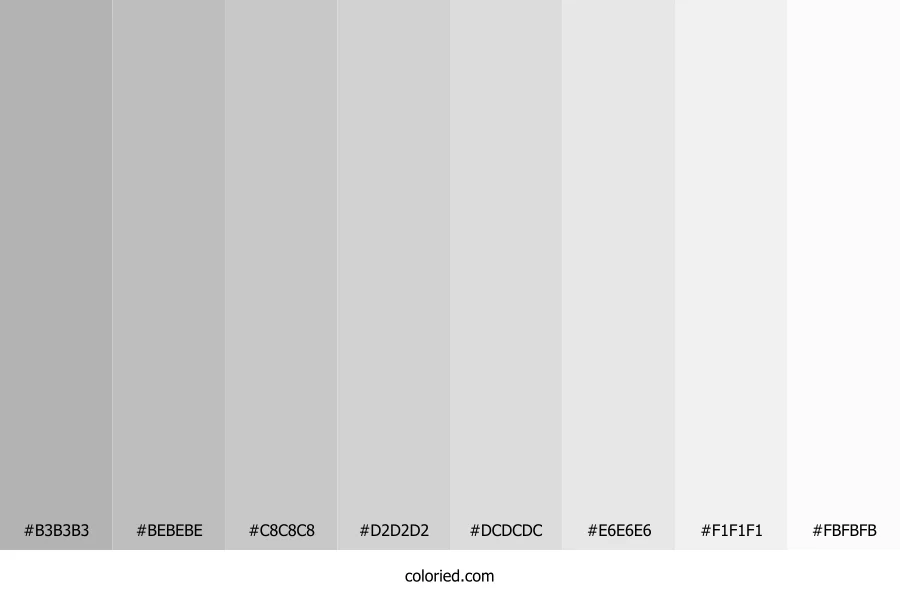 ![]() | #B3B3B3 | 179, 179, 179 | 0, 0%, 70% | 0%, 0%, 0%, 30% | oklch(0.767 0.000 263) |