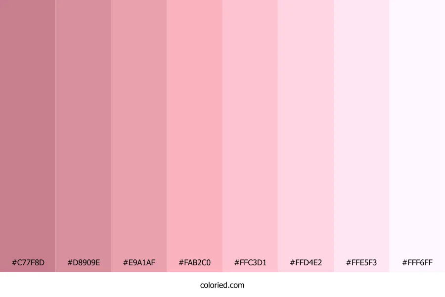 | #D8909E | 216, 144, 158 | 348, 48%, 71% | 0%, 33%, 27%, 15% | oklch(0.729 0.089 7) | |