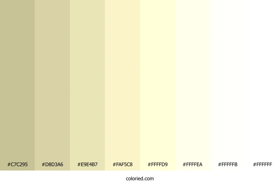 ![]() | #C7C295 | 199, 194, 149 | 54, 31%, 68% | 0%, 3%, 25%, 22% | oklch(0.807 0.060 102) |
