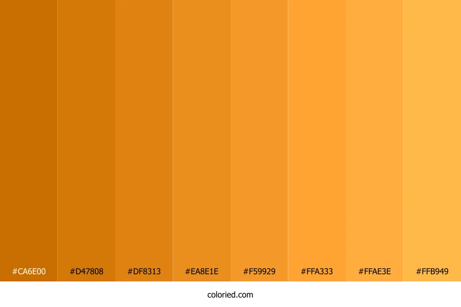 ![]() | #CA6E00 | 202, 110, 0 | 33, 100%, 40% | 0%, 46%, 100%, 21% | oklch(0.630 0.150 58) |