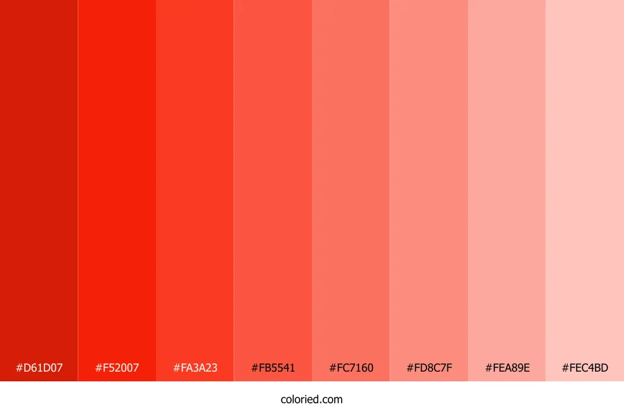 | #F52007 | 245, 32, 7 | 6, 94%, 49% | 0%, 87%, 97%, 4% | oklch(0.618 0.242 30) | |