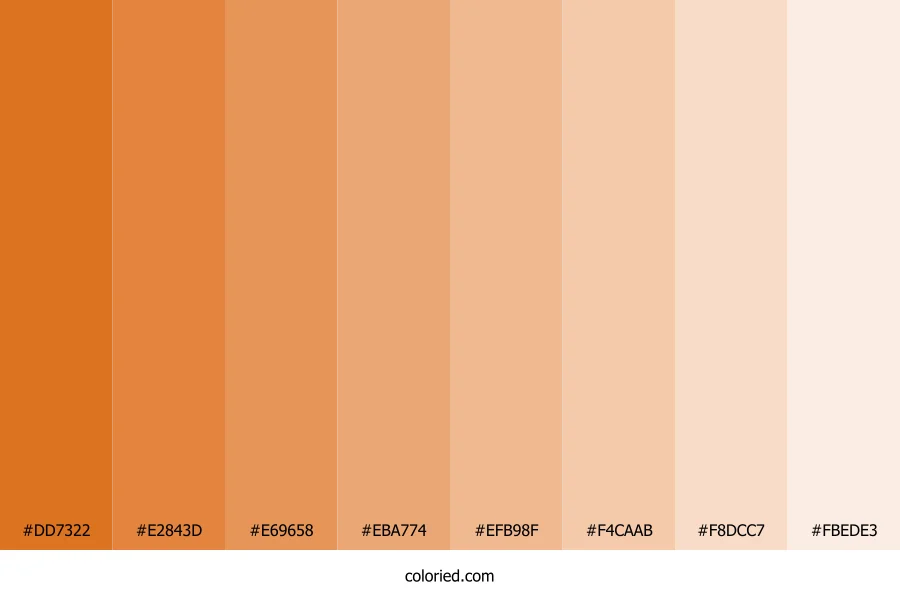 | #E2843D | 226, 132, 61 | 26, 74%, 56% | 0%, 42%, 73%, 11% | oklch(0.702 0.143 55) | |