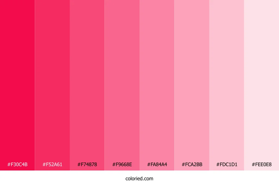 ![]() | #F30C4B | 243, 12, 75 | 344, 91%, 50% | 0%, 95%, 69%, 5% | oklch(0.614 0.242 17) |
