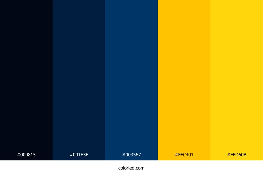 ![]() | #000815 | 0, 8, 21 | 217, 100%, 4% | 100%, 62%, 0%, 92% | oklch(0.131 0.036 248) |